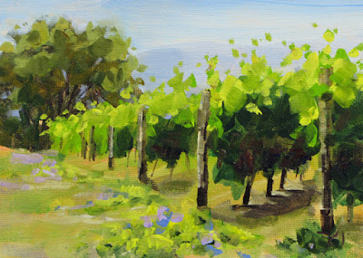 I do these little paintings as often as I can. They are done quickly - usually about an hour of painting time, so they have a fresh, lively feel to them.
